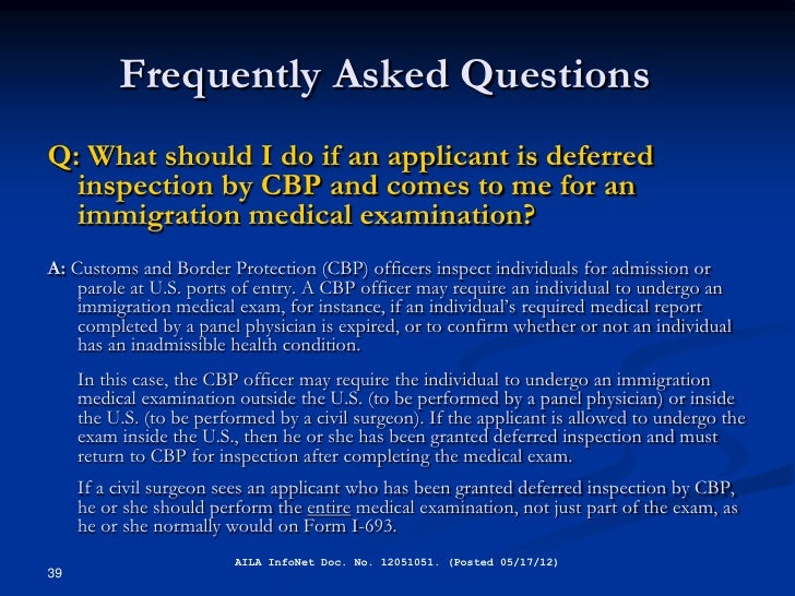 I-693, after having made every reasonable effort to verify that person whom I examined is the person identified in Part 1; that I performed the examination in accordance with the Centers for Disease Control and Prevention's Technical Instructions , and all ... Doc Viewer